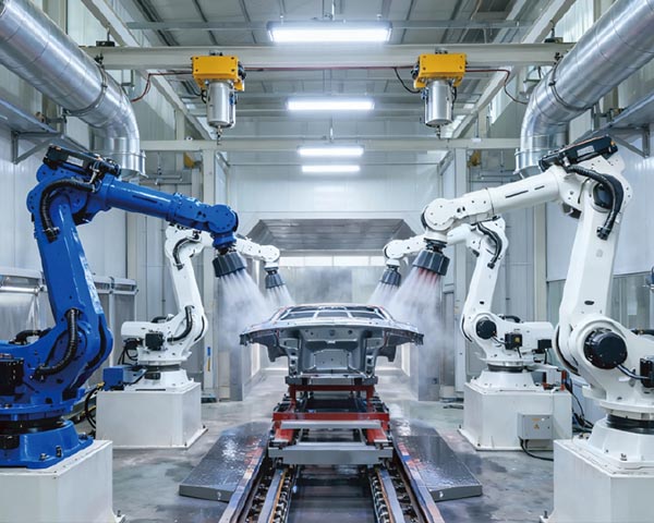 精准覆盖,高效延展七轴机械臂灵动作业,搭配高精度导轨,无限扩展工作范围。实现复杂曲面的一致性与无死角喷涂,大幅提升产能与涂料利用率。